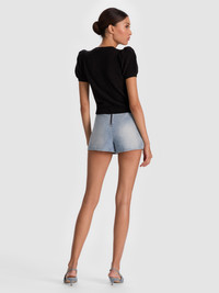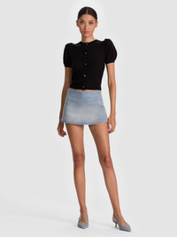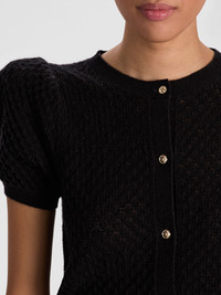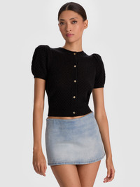 Sabine is the cropped cardigan you’ll find yourself styling a hundred ways. Knit in luxe cashmere with puff sleeves and a fitted silhouette, it has just enough detail to feel special without being fussy. The length makes it ideal over a tank or dress now, and later it slips under coats without adding bulk. Simple, versatile, and quietly indispensable, it will earn a permanent spot in your fall rotation! DETAILS - Cashmere cardigan - Pointelle stitch - Puffed sleeves - Fitted - Cropped - Front button closures - 97% cashmere, 3% nylon - Dry clean only - Imported FIT - Model is 5'10" and wearing a size XS - Length from the shoulder: 19" - Fits true to size, take your normal size