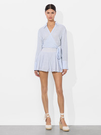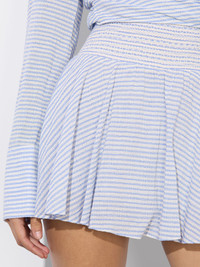 Our newest striped skort obsession continues, with the built-in shorts you didn’t know you needed. Skylar is crafted from a lightweight slub gauze and features a smocked waistband and fluttery mini length. Equal parts cute and practical, it’s made for biking, dancing, brunching, and anything else you want to do without a wardrobe malfunction. Pair it with its matching Hannon top for a full set moment. DETAILS - Mini skirt - Attached short lining - Smocked waistband - Striped slub gauze - Back zipper closure - 80% viscose, 20% linen - Dry clean only - Imported FIT - Model is 5'10" and wearing a size 0 - Skirt length: 14 1/2" - Fits true to size, take your normal size