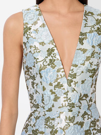 A metallic moment worth making an entrance for. Our Tatum mini dress stuns in shimmering printed jacquard, designed with an A-line silhouette that flatters and flows with every move. The plunging V-neckline adds a touch of allure, while a smocked back and hidden zipper ensure a smooth, comfortable fit. Finished with a subtle sheen and striking detail, this standout style is guaranteed to be a conversation piece. DETAILS - Mini dress - V-neck - Printed metallic jacquard - A-line fit - Smocked back with zipper closure - 86% polyester, 14% nylon - Dry clean only - Imported FIT - Model is 5'10" and wearing a size 0 - Length from the shoulder: 33" - Fits true to size, take your normal size
