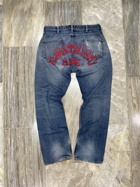 good used condition 7.5 / 10 condition rating flaw: prints are getting thin because of usage, distressed parts (check all photos) size m on tag Actual Measurements (inches) Waist: 17 / 34 around Inseam:29 Outseam: 40 Front Rise: 14 Thigh: 11.5 Leg opening:8 Knee: 11 Message before buying. Items are pre-loved / second hand used. Manage your expectations. Buy with confidence. No return no exchange. Shipping from Asia Shipping time: 1-3 Days after bought Courier: DHL ETA:3-7 DAYS