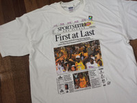 NBA × Vintage - Vintage Lakers 2000 Championship Newspaper Tee
