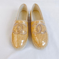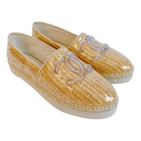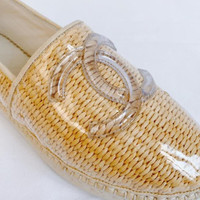 Espadrilles in raffia PVC with CC logo. New, 100% authentic. Delivered in their original packaging. Final sale for customers outside the United States. Details Online since:2025-07-27 Categories: women Category: Shoes Sub-category: Flats Designer: Chanel Condition: 0 Material: Leather Colour: Beige Size: 37 EU Location: empty Reference: 57450527