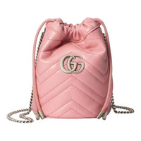 Marmont bucket bag with GG logo New and 100% authentic. Comes in its original packaging. Dimensions: 19 cm (L) x 13 cm (W) x 17 cm (H) Final sale for shipments outside the United States. Customs fees are non-refundable. Orders will be shipped exclusively via Vestiaire Collective. Details Online since:2026-01-14 Categories: women Category: Bags Sub-category: Handbags Designer: Gucci Condition: 0 Material: Leather Colour: Pink Location: empty Reference: 62958759
