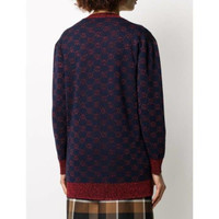 Metallic cardigan with GG intarsia pattern New and 100% authentic. Final sale for shipments outside the United States. Customs fees are non-refundable. International orders may be canceled. Orders will be shipped exclusively via Vestiaire Collective. Details Online since:2025-12-01 Categories: women Category: Clothing Sub-category: Knitwear Designer: Gucci Condition: 0 Material: Wool Colour: Navy Size: S International Location: empty Reference: 61642357