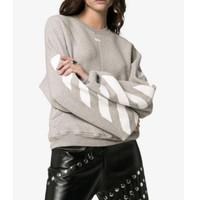 Kangaroo pocket sweatshirt with diagonal stripes and printed logo. Brand new and 100% authentic. Details Online since:2025-07-21 Categories: women Category: Clothing Sub-category: Knitwear Designer: Off-White Condition: 0 Material: Cotton Colour: Grey Size: XS International Location: empty Reference: 57279563