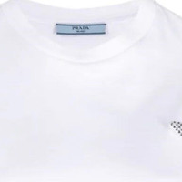 logo triangle crystal tee wht Let me know if you're looking for another size :) Brand new 100% authentic. Details Online since:2024-04-28 Categories: women Category: Clothing Sub-category: Tops Designer: Prada Condition: 0 Material: Cotton Colour: White Size: S International Location: empty Reference: 43673244