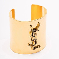 YSL logo cuff New and 100% authentic. Comes with original packaging. Details Online since:2026-01-12 Categories: women Category: Jewellery Sub-category: Bracelets Designer: Saint Laurent Condition: 0 Material: Metal Colour: Gold Location: empty Reference: 62866100