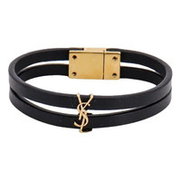 YSL Logo Vertical Double Leather Bracelet in Black/Gold, Size M New and 100% Authentic Comes in its original packaging Details Online since:2026-01-13 Categories: women Category: Jewellery Sub-category: Bracelets Designer: Saint Laurent Condition: 0 Material: Leather Colour: Black Location: empty Reference: 62894969