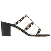 ROCKSTUD CALFSKIN LEATHER SLIDE SANDAL 60 MM