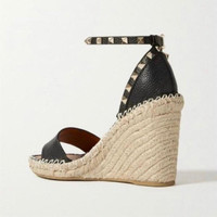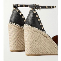 Rockstud 105 Black Wedge Espadrilles Please check my shop for other sizes :) Brand New 100% Authentic. Comes with original packaging Heel Heights 4" Details Online since:2025-10-09 Categories: women Category: Shoes Sub-category: Sandals Designer: Valentino Garavani Condition: 0 Material: Leather Colour: Black Size: 42 IT Location: empty Reference: 59756098