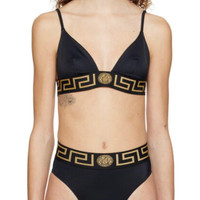 Medusa Greca Bikini Top This listing is for the TOP only. Mathcing bottom available in my store. Please check my store for other sizes :) Brand new 100% authentic. Versace swim size 5. Details Online since:2025-05-19 Categories: women Category: Clothing Sub-category: Swimwear Designer: Versace Condition: 0 Material: Synthetic Colour: Black Size: XL International Location: empty Reference: 55432090