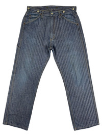 CODE: AD134 ITEM DETAILS: Original! Hysteric Glamour Carpenter Baggy Denim Pants, Kinky Jeans. The colour is indigo blue with herringbone twill stripes pattern. Straight cut with baggy style. Got suspender buttons at the waist. All buttons & rivets stamped with Hysteric Glamour & it using TALON zipper. Two front pockets with coin pocket on the right pocket. There are also two back pockets. It comes with KINKY JEANS Hysteric Glamour tag/ label. Made in Japan. Material is 100% cotton. Loose sticthing at the left back pocket (refer to photo 14). Slightly got sun-faded effect at the front knees and the right back pocket (refer to photos 5, 6 & 12). But it still look stunning to wear. Size on tag cannot read due to faded, but it can fit to person with 32 inches waist [refer to manual measurements provided, as it laying flat]. Sizes vary so please use measurements for the best idea of fit. The pant is in good condition and it comes laundered and ready to wear. Welcome to ALLDIFFERENT's shop KINDLY READ THE DESCRIPTION CAREFULLY BEFORE BUYING!!! Please pay close attention to the measurements provided. Do not rely on tag size as pre-worn items may have been altered, stretched, or shrunk and vintage sizes do not directly translate the modern sizes. The best way to ensure a correct fit is to compare our measurements with the measurements of a similar item that you know fits you well. Please enlarge the photos for a clearer image. Please keep in mind that all computer screens or any devices reflect the color differently so there may be slight inconsistency between the photo and the product. So once again, please check the right measurement and photos carefully!!! ✅ We have the item physically ✅ We sell 100% authentic ✅ We stand behind what we sell ✅ We usually process shipping within 2-3 business days after your payment succeed ✅ We use the safe and express shipper, with a tracking number provided (roughly 3-7 business days only to arrive) ✅ If you want to consider multiple items, please drop a note on each one. We will arrange the price for combined shipping. 🔔 IMPORTANT NOTES: Kindly leave your contact number when you do the purchase, to make sure the shipping process is smooth. Get ready to receive goods, and please make sure your address is complete and correct. I'm committed to a 5-star review. If something holds you back from that, I want to know the reason so I can address it. THANK YOU!