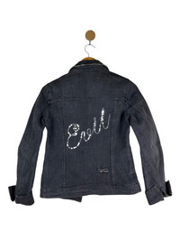 CODE: AD118 ITEM DETAILS: Hysterics by Hysteric Glamour, distressed denim buttonless jacket, with Evil spelling sequin’s at the back. Made in Japan. Black colour. Size on tag show FREE size, but you can match the size by manual measurements provided. Material is 100% cotton. Two pockets at front chest part. Sizes vary so please use measurements for the best idea of fit. The jacket is in very good condition, and it comes laundered and ready to wear. Welcome to ALLDIFFERENT's shop KINDLY READ THE DESCRIPTION CAREFULLY BEFORE BUYING!!! Please pay close attention to the measurements provided. Do not rely on tag size as pre-worn items may have been altered, stretched, or shrunk and vintage sizes do not directly translate the modern sizes. The best way to ensure a correct fit is to compare our measurements with the measurements of a similar item that you know fits you well. Please enlarge the photos for a clearer image. Please keep in mind that all computer screens or any devices reflect the color differently so there may be slight inconsistency between the photo and the product. So once again, please check the right measurement and photos carefully!!! ✅ We have the item physically ✅ We sell 100% authentic ✅ We stand behind what we sell ✅ We usually process shipping within 2-3 business days after your payment succeed ✅ We use the safe and express shipper, with a tracking number provided (roughly 3-7 business days only to arrive) ✅ If you want to consider multiple items, please drop a note on each one. We will arrange the price for combined shipping. 🔔 IMPORTANT NOTES: Kindly leave your contact number when you do the purchase, to make sure the shipping process is smooth. Get ready to receive goods, and please make sure your address is complete and correct. I'm committed to a 5-star review. If something holds you back from that, I want to know the reason so I can address it. THANK YOU!