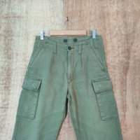 [PLEASE READ THE DESCRIPTION FIRST BEFORE BUY MY ITEM] ✔️JUST OFFER YOUR PRICE ✔️ ✔️ MESSAGE YOUR PRICE ✔️ ✓ VINTAGE ARMY STYLE FADED CARGO PANTS [MEASUREMENT] Actual saiz manual WAIST ~ (26")(27) INCHES OUTSEAM (LENGTH) ~ 38" INCHES INSEAM ~ 27.5" INCHES FRONT RISE ~ 11" INCHES LEG OPEN ~ 7" (14") INCHES THIGH ~ 10.5" (21") INCHES [CONDITION] USE GOOD CONDITION ✓AS PER PICTURE [SHIPPING] 📞 Please leave your contact number on the inbox when making a purchase for shipping purposes PAYMENT & NOTICE] -We accept PayPal ONLY - No return/refund - All items will be post over shipping company (DHL Express) counter within 1-3 working days after payment completed. -We are trusted seller. Do message me if you have any questions to ask about this item. -This is used item, so don’t expected it to be like NEW condition!! -Just offer your price. -Measurement might be different +- 1”. -Colour might be different due to lighting Effec. ⭐️I do combine multiple package. Buying more you will save on shipping and more discount. TE#SEP21#2041