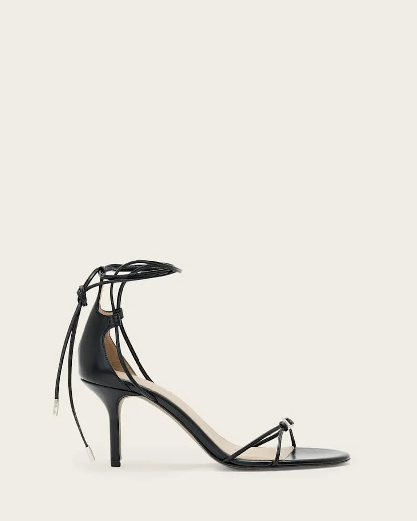 Ali Leather Lace Siletto Sandals Leather heeled sandals which pair effortlessly with dresses and our tailoring. - Fits true to size - Stiletto heeled leather sandals - AllSaints carabiner charm featured - Lace up ankle straps - Almond toe - Heel height: 7.5cm FABRIC & CARE: - Upper: 100% sheep leather - Sock 1: 100% sheep leather - Lining: 100% sheep leather - Sole: 100% resin - Wipe clean only - The soles on these shoes have been finished to be worn and distressed over time to give a unique appearance. This is not a fault but an inherent part of the design. Made in: Spain Product ID: USW096FE-5