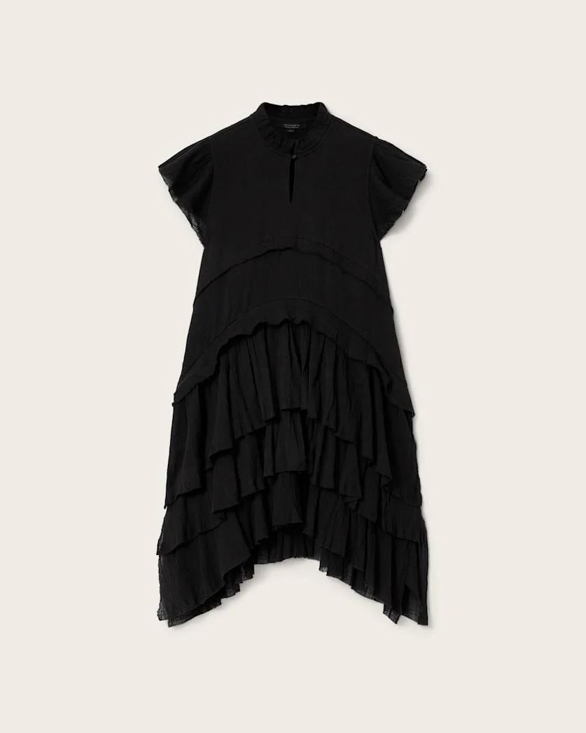 Cavarly Cotton Mini Dress We're thinking… a classic, but more casual. Our statement Cavarly Dress is back with a new look. A bit of drama, but always playful – we love this dress for all seasons. - Single button closure - Round neck - Short sleeves - Raw edge detail - Branded metal button - Frill details - Model is 5'9.5" and wearing size US 4 FABRIC & CARE: - Shell: 100% organic cotton - Lining: 100% recycled polyester - Mild machine wash Made in: India Product ID: USW220DE-5