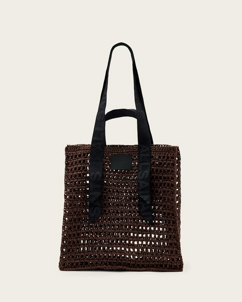 Lullah Woven Paper Mesh Tote Bag Woven from paper and finished with leather trims, the Lullah Tote Bag transitions effortlessly from everyday styling to beach days. - Woven paper tote bag with mesh stitching - Contrast black webbing straps - Embossed logo on leather patch - Handle drops: Max: 33cm, Min: 16cm - Measurements: Height: 38cm, Width: 15cm, Width: 37cm FABRIC & CARE: - Shell: 100% paper - Trim: 100% cow leather - Wipe clean only Made in: China Product ID: USW416XE-4660