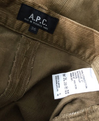 PLEASE SEE CAREFULLY THE MEASUREMENT BELOW !!! BRAND : - A.P.C MADE IN : - JAPAN SIZE ON TAG : - 36 WAIST : - 28 INCHES LENGTH : - 25 INCHES MATERIAL : - CORDUROY COLOR : - BROWN CONDITION : - 90% WE ARE USING DHL EXPRESS WITH TRACKING NUMBER. IT WILL TAKE 3-5 WORKING DAYS TO DELIVER. PLEASE LEAVE YOUR PHONE NUMBER DURING PURCHASE. PHONE NUMBER REQUIRED FOR DHL EXPRESS (VERY IMPORTANT)-. PLEASE READ ALL THE DESCRIPTION BEFORE BUYING. THIS IS USED CLOTHES IF YOU WANT PERFECT CONDITION DON'T BUY FROM ME. BUY WITH CONFIDENCE PLEASE ALWAYS REMEMBER THAT MOST OF MY ITEMS ARE PRE-OWNED/USED AUTHENTIC COLLECTIONS, SO VERY TINY FLAWS ARE COMMON. IT MEANS THAT, I WILL ONLY SELL ITEMS THAT I WOULD LOVE TO KEEP THEM. ANY SIGNIFICANT FLAWS ARE CLEARLY DESCRIBED IN THE 'Condition' SECTION OF EACH ITEM LISTING. ITEM IS STORED IN A DUST-FREE, SMOKE-FREE, AND HYGIENIC ENVIRONMENT!! WE GUARANTEE SATISFACTION & AUTHENTICITY! NOTHING TO WORRY AND THANK YOU! PAYMENT : - Payment method is via Pay Pal only. : - I really appreciate if payment could be made soon after purchase and please don’t exceed 1 week. SHIPPING : - I shipped items within 1-3 DAY after receiving a cleared payment on Pay Pal (except for public holidays and weekends) and please do make sure your address is correct. : - Please do not hesitate to contact me if you still haven’t received the consignment after 30 days and we surely will work something out. TERMS OF SALE : - We guarantee Satisfaction & Authenticity. : - I will try my very best in describing my items especially the “condition” section. : - Please check on the measurement carefully as I will not accept returns for a measurement problem. : - Unfortunately, no-one is perfect because we are human and sometimes I might do mistakes in my listings. : - I will try my very best to resolve any problems regardless how huge the problems are. What is needed is your co-operative assistance. : - Every problem does have solutions. ABOUT US : - We are professional international sellers originated from Malaysia. : - International transaction is our expertise as we have handle thousands of genuine transactions worldwide between thousands of satisfied customers. : - Our major expertise are on high-end designer Brands : - 100% customer satisfaction is our goal.