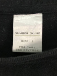 KINDLY PLEASE READ ALL THE DESCRIPTION BEFORE PURCHASING!!!..DON'T HESITATE TO ASK ANY QUESTION :- Brand Name :- NUMBER (N)INE Tag Size :- 3 Kindly see the actual measurements :- (All measurements were taken lying flat) Actual size Manual Measurement (approximately) : UNDERARM TO UNDERARM :- 18.5 inches LENGTH (BACK COLLAR TO HEM :- 25 inches MATERIAL:- COTTON MADE IN :- JAPAN Condition: GOOD CONDITION (USED CLOTHING) An item that has been used or worn previously. See Our listing for full details and description of any imperfections. Please don't expect it to be like new or in pristine condition Kindly see all pictures Thank you so much for your visit PLEASE LEAVE YOUR PHONE NUMBER ON THE NOTE WHILE MAKE A PURCHASE AND PLEASE MAKE SURE YOUR ADDRESS IS COMPLETE AND CORRECT Etc: Don't Worry About Customs Tax or Fees. I usually Declare all Items as 'Gift' & Declare Value of Item Lower than Original Price. All Items are Sold "AS IS" so Please be Sure to Read The Entire Description and Look at All The Pictures. Any Question and More Details Please Don't Hesitate to Contact Me. ATTENTION : Please pay close attention to measurements provided. Do not rely on tag size as pre-worn items may have been altered, stretched or shrunk & vintage sizes do not directly translate the modern sizes.The best way to ensure a correct fit is to compare our measurements with the measurements of a similar item that you know fits you well.Please enlarge the photos for clearer image