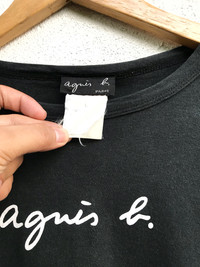 KINDLY PLEASE READ ALL THE DESCRIPTION BEFORE PURCHASING!!!..DON'T HESITATE TO ASK ANY QUESTION :- Kindly see the actual measurements :- (All measurements were taken lying flat) Actual size Manual Measurement (approximately) : BRAND NAME :- AGNES B. TAG SIZE :- L UNDERARM TO UNDERARM :- 20.5 inches LENGTH (BACK COLLAR TO HEM :- 26 inches MATERIAL:- COTTON MADE IN :- FRANCE Condition: GOOD CONDITION (USED CLOTHING) PLEASE LEAVE YOUR PHONE NUMBER ON THE NOTE WHILE MAKE A PURCHASE AND PLEASE MAKE SURE YOUR ADDRESS IS COMPLETE AND CORRECT Don't Worry About Customs Tax or Fees. I usually Declare all Items as 'Gift' & Declare Value of Item Lower than Original Price. All Items are Sold "AS IS" so Please be Sure to Read The Entire Description and Look at All The Pictures. Any Question and More Details Please Don't Hesitate to Contact Me. ALL SALES ARE FINAL NO REFUND NO RETURN AFTER PURCHASE! Thanks for your visit.
