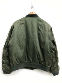 KINDLY PLEASE READ ALL THE DESCRIPTION BEFORE PURCHASING!!!..DON'T HESITATE TO ASK ANY QUESTION :- Kindly see the actual measurements :- (All measurements were taken lying flat) Actual size Manual Measurement (approximately) : BRAND NAME :- MA-1 BOMBER JACKET UNDERARM TO UNDERARM :- 25 INCHES LENGTH (BACK COLLAR TO HEM :- 26 INCHES MATERIAL:- POLYESTER CONDITION : GOOD CONDITION (USED CLOTHING) WE ARE USING DHL EXPRESS, IT TAKES 3-5 DAYS ONLY TO ARRIVE. PLEASE LEAVE YOUR PHONE NUMBER ON THE NOTE WHILE MAKE A PURCHASE AND PLEASE MAKE SURE YOUR ADDRESS IS COMPLETE AND CORRECT Don't Worry About Customs Tax or Fees. I usually Declare all Items as 'Gift' & Declare Value of Item Lower than Original Price. All Items are Sold "AS IS" so Please be Sure to Read The Entire Description and Look at All The Pictures. Any Question and More Details Please Don't Hesitate to Contact Me. ALL SALES ARE FINAL NO REFUND NO RETURN AFTER PURCHASE! Thanks for your visit.