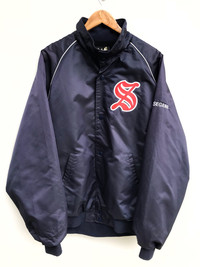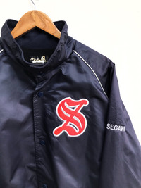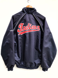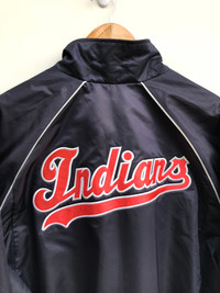KINDLY PLEASE READ ALL THE DESCRIPTION BEFORE PURCHASING!!!..DON'T HESITATE TO ASK ANY QUESTION :- Kindly see the actual measurements :- (All measurements were taken lying flat) Actual size Manual Measurement (approximately) : BRAND NAME :- BASEBALL INDIANS UNDERARM TO UNDERARM :- 27 INCHES LENGTH (BACK COLLAR TO HEM :- 30 INCHES MATERIAL:- NYLON POLYESTER MADE IN :- JAPAN CONDITION : GOOD CONDITION (USED CLOTHING) WE ARE USING DHL EXPRESS, IT TAKES 3-5 DAYS ONLY TO ARRIVE. PLEASE LEAVE YOUR PHONE NUMBER ON THE NOTE WHILE MAKE A PURCHASE AND PLEASE MAKE SURE YOUR ADDRESS IS COMPLETE AND CORRECT Don't Worry About Customs Tax or Fees. I usually Declare all Items as 'Gift' & Declare Value of Item Lower than Original Price. All Items are Sold "AS IS" so Please be Sure to Read The Entire Description and Look at All The Pictures. Any Question and More Details Please Don't Hesitate to Contact Me. ALL SALES ARE FINAL NO REFUND NO RETURN AFTER PURCHASE! Thanks for your visit.