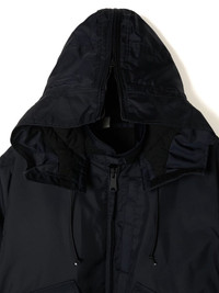 N. HOOLYWOOD TEST PRODUCT EXCHANGE SERVICE is offering its take on a military-inspired silhouette in this collaboration with Alpha Industries. The resulting ‘Military Blouson’ combines elements of the CWU-45/P Flight Jacket, which was officially adopted by the US military, and its updated variant, the CWU-106/P. This jacket features a nylon/twill fabric in a bespoke color, and it retains some original mil-spec features like tabs on the sleeves, Velcro arm patches, patch pockets and a quilted lining. One of the crowning features is its unique hood shape, which features a zipper on the top. The blouson is available in Black and Sage Green.