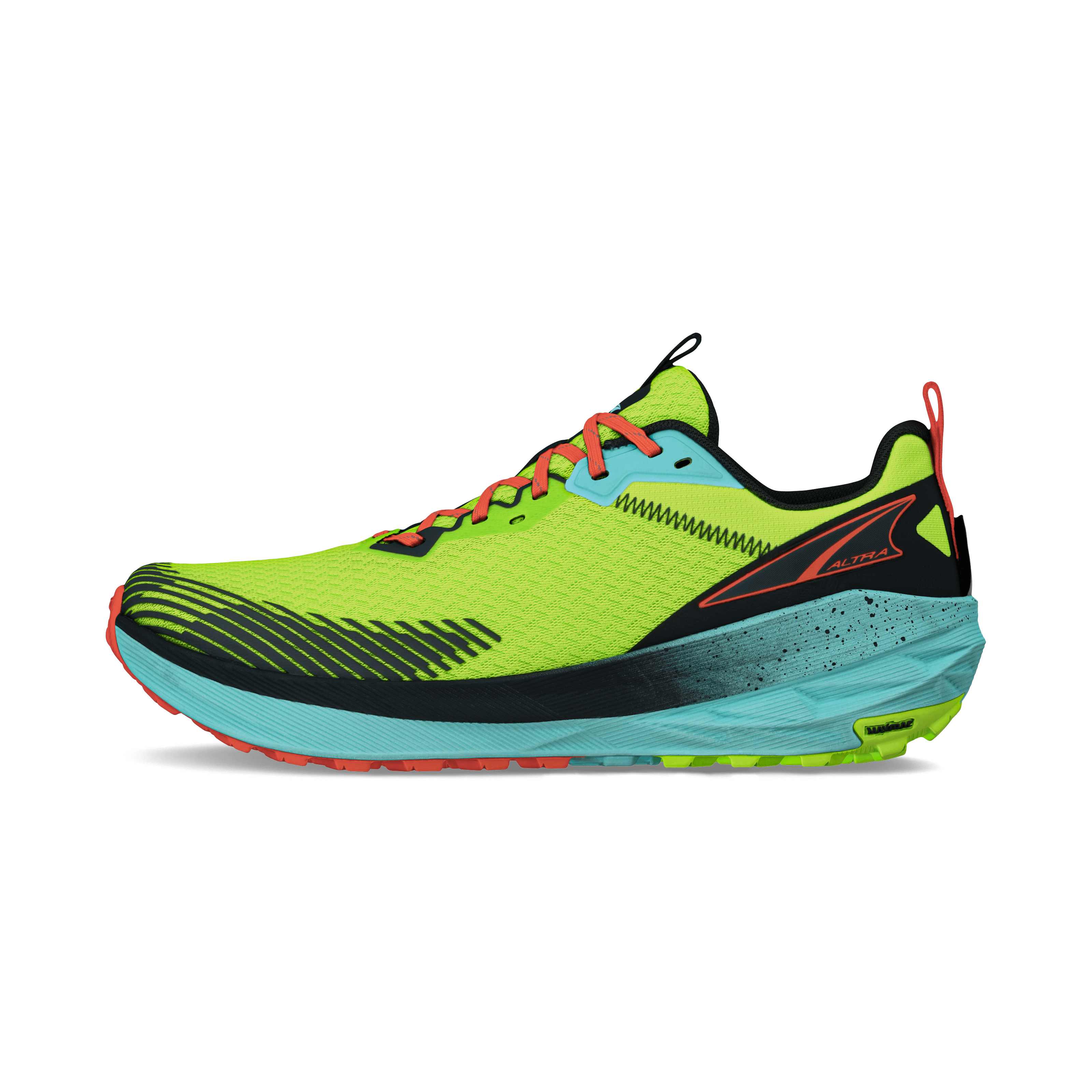 Experience a new high in a shoe designed to deliver trail running euphoria with an effortless stride. It’s lightweight, grippy, and focused on performance. We updated the mesh upper to help improve breathability and added a new lacing eyelet, designed to improve fit. Go ahead and kick rocks because we pumped up the TPU overlay to help increase toe protection coverage and durability. Easily attach a Trail Gaiter, made to help keep your feet clean from debris, with an integrated GaiterTrap™ detail. It’s got lightweight, responsive midsole foam to keep you comfortable on all terrain, and a grippy MaxTrac™ outsole designed for traction and durability. A low 4mm drop and rocker shape geometry encourage an efficient toe-off and a smooth, quick roll through your stride. With a roomy toe box and secure midfoot, you get plenty of room to help your toes move more freely. Planning a wild day on the trail? Send it in a shoe designed to deliver. DETAILS - Best For: Trail Running, Hiking - Heel-to-Toe Drop: 4mm - Upper: Mesh - Midsole: Lightweight compression-molded EVA foam - Outsole: MaxTrac™ - Weight: 10.4 oz / 293.4 g - Cushion: High - Stack Height: 28mm / 32mm - Support: Neutral - FootShape: Standard WHAT'S NEW - Updated mesh upper to help increase breathability - Integrated GaiterTrap™ detail for easy attachment - New lacing eyelet, designed for an improved fit - Increased TPU overlay to help enhance toe protection coverage and durability