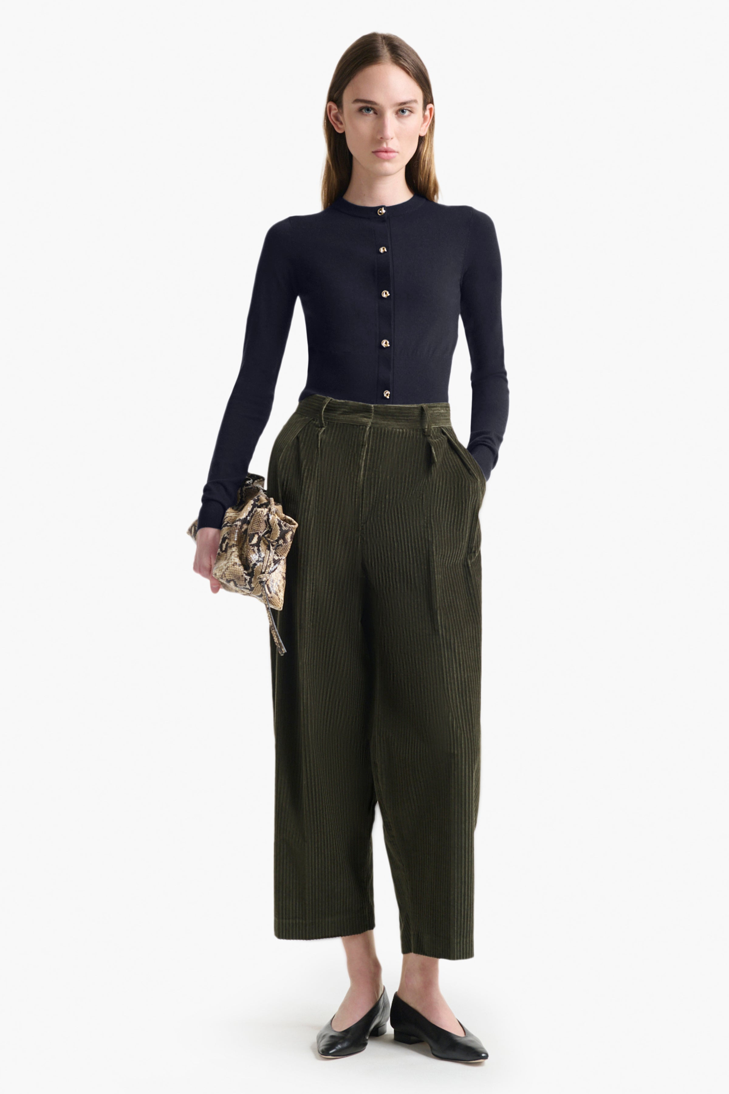 The Arlette sweater is a chic wardrobe staple. It's made from a super soft merino wool blend with ribbed knit edges, then finished with signature two tone metal buttons designed to decorate it like jewelry. Details 88% Merino Wool 6%Polyamide 5%Polyester 1%Elastane. Imported.