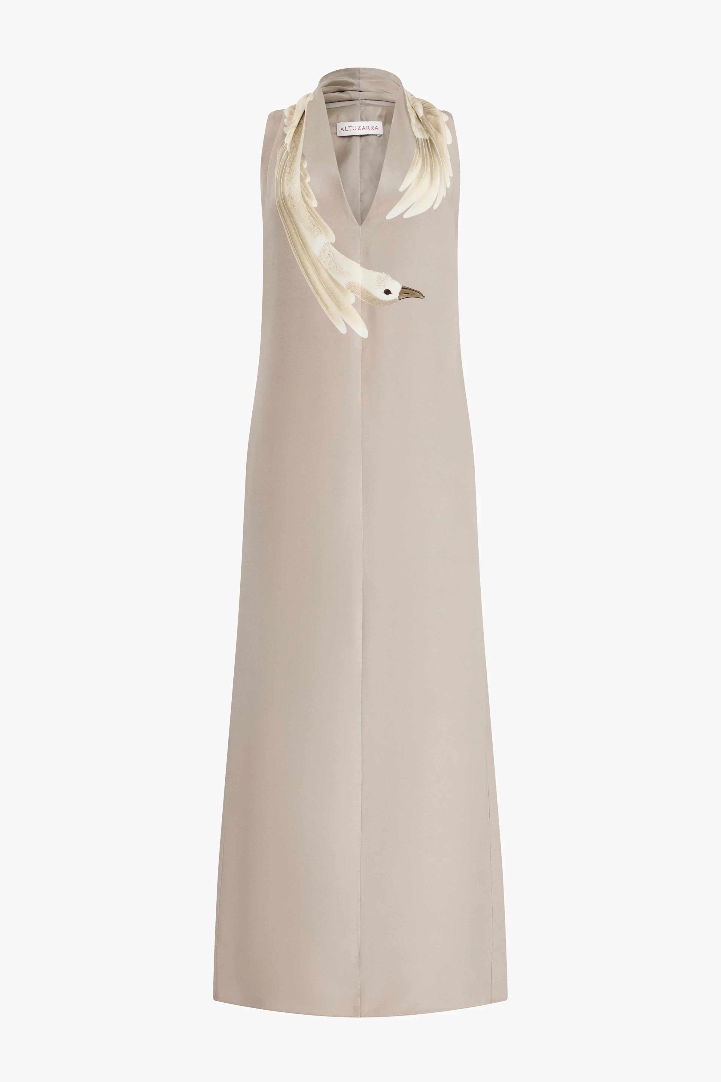 The Baker dress is shaped from soft silk to a long, slim silhouette. Note the surrealist bird motif, which wraps around the collar like a vintage mink stole. Details '- 100% Silk. Made In Italy