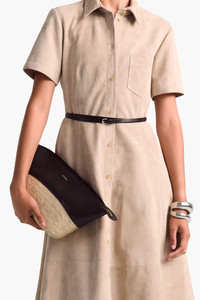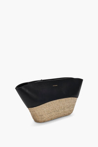 The Basket clutch is aptly named thanks to its part woven construction. The open-top style is finished with a black leather trim and stamped with the brand logo. Details 90% Polyamide, 10% Calf Leather Made in Spain