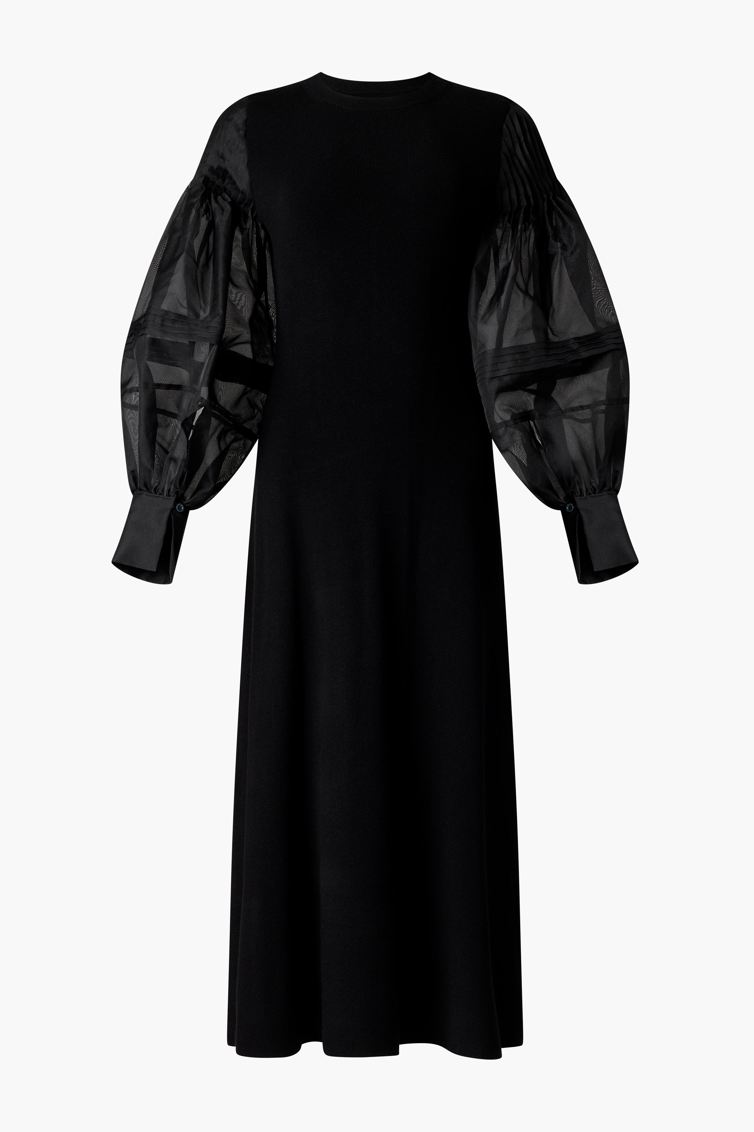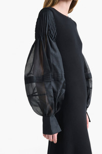 The Carino Dress is a modern wardrobe staple. Shaped from silk to a midi-length silhouette, it features voluminous, transparent sleeves with button fastening cuffs. Classic pumps and gold jewelry will complete the look. Details 100% Silk. Made in Italy