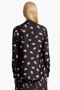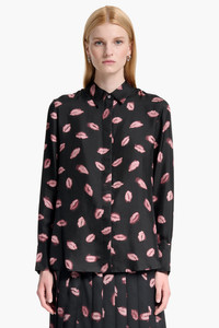 The Chika Top is a signature style in sheer chiffon. Capturing an easy elegance, the relaxed style features a small point collar, a concealed button front closure and comes complete with a camisole top. Note the smudged kisses which resemble marks left on a napkin. Details 100% Silk. Made in Portugal