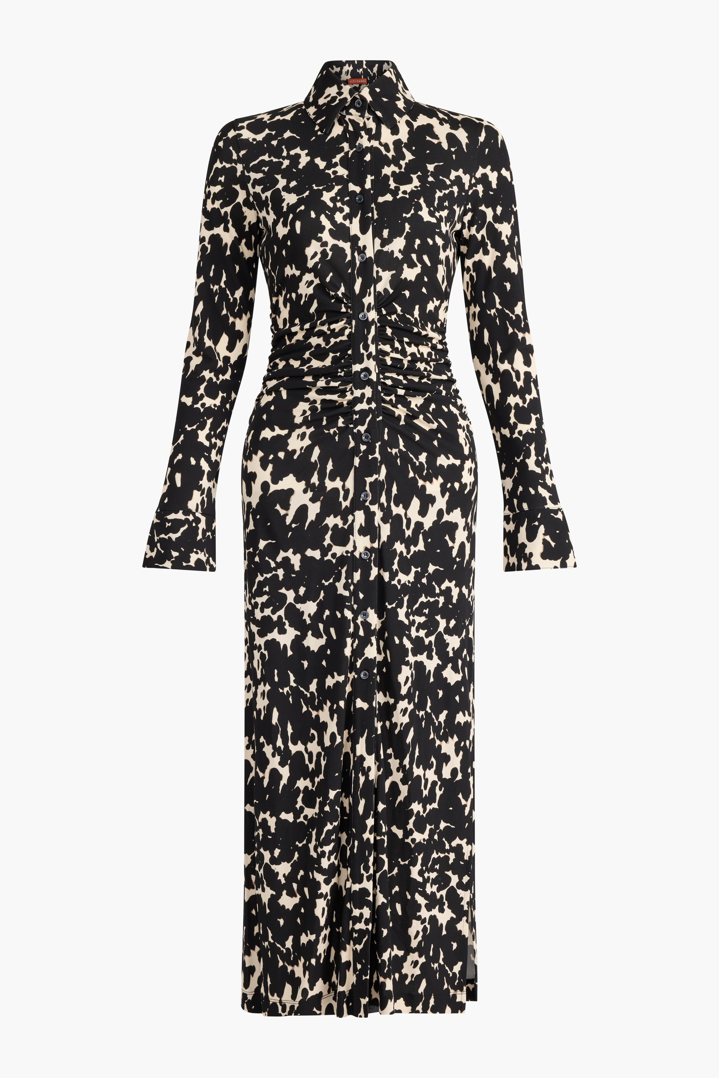 The Claudia Dress is cut from jersey for a slim fit with waist-flattering ruching at the hips, complete with side slits. This season it features an inky tortoiseshell print which was inspired by Altuzarraa€™s own keepsake box. Details 100% Viscose. Made in Portugal