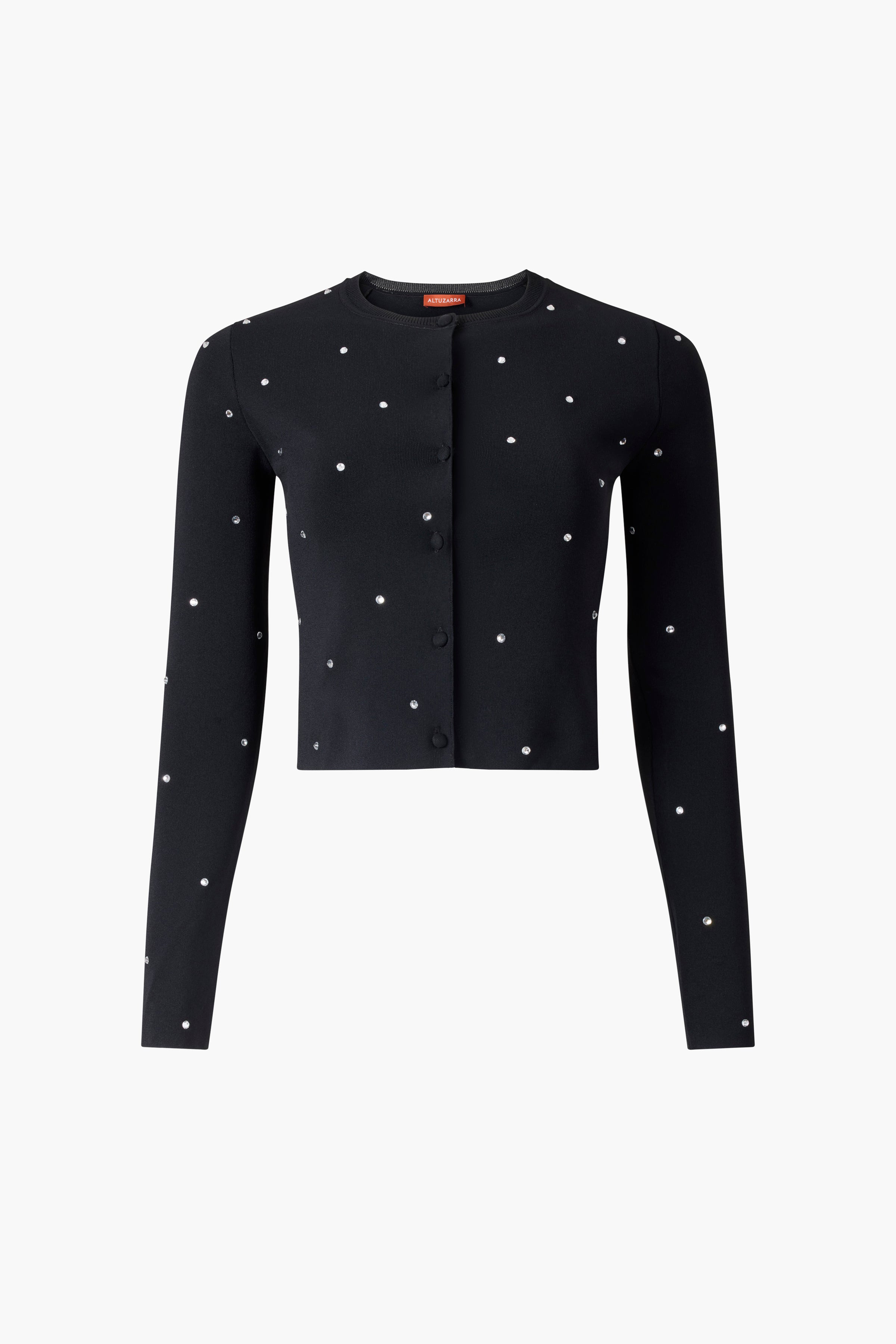 The Dorrie Sweater is subtly embellished with shimmering crystals that instantly elevate the classic button-up silhouette. Made from jersey with a round neck, use it to bring sparkle to your day to night looks. Details 94% Rayon Viscose, 6% Elite Fiber Polyester