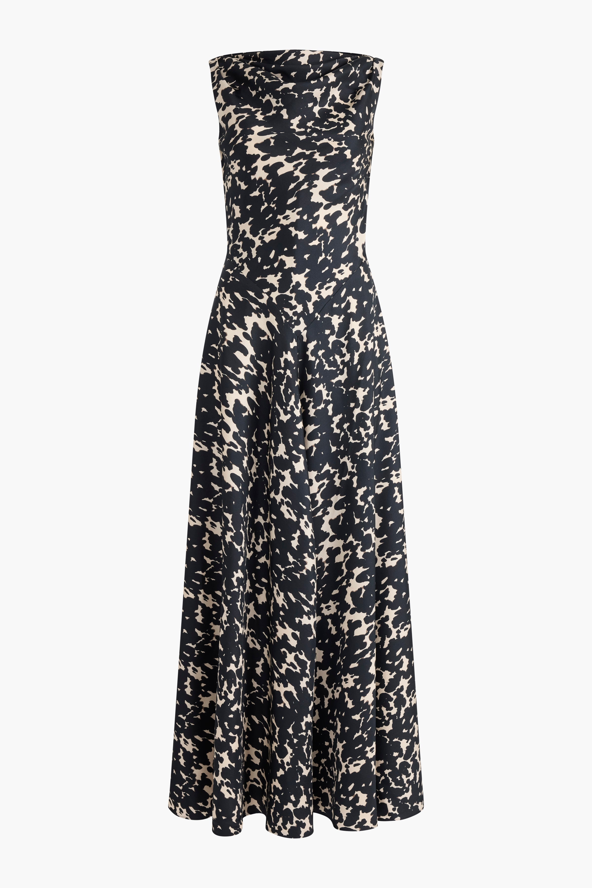 The Drina dress showcases Altuzarra's FW25 inspiration, drawing from deeply personal artifacts such as letters, mementos, diaries. Shaped from silk, it's detailed with a bold Tapioca tortoise print. Details 100% Silk. Made in Italy