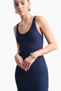 The Gwendi dress is a wardrobe staple. Woven from a silk blend to a close fitting silhouette, the interesting texture brings a unique finish to the classic, minimal style. Designed to contour your figure, it has a low scoop neck and falls to a maxi hemline. Details 52% Silk 48% Viscose. Made in Italy