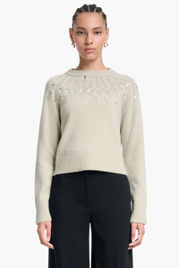 The Harold sweater is embellished with glistening crystals around the neckline. It's made from soft virgin wool with ribbed trims. Wear yours with everything from jeans to mini skirts. Details '- 100% Virgin Wool