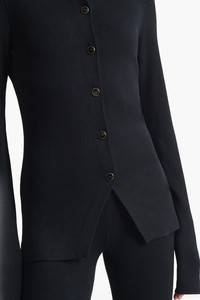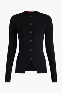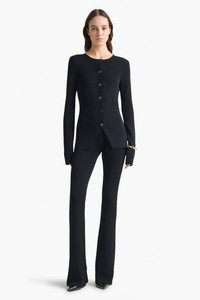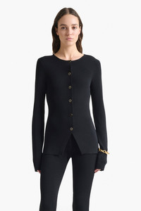 The Lainey cardigan is a luxurious everyday staple. It's knitted from soft jersey with a crew neck and gold-tone button front fastenings that lead to cutaway hem. Layer yours over a tonal tank. Details -96% Rayon 4% Elite -Imported