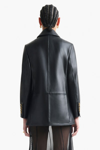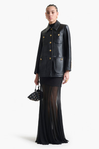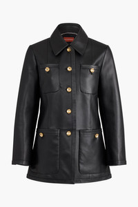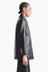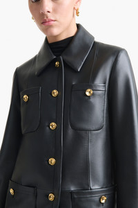 The Leni coat is expertly made from lamb's leather to a slightly elongated silhouette. Note the four patch pockets decorated with gold buttons like jewelry. Details 100% Lamb Leather. Made in Turkey