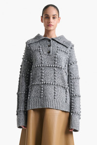 The Mitch sweater is fresh of the FW25 runway where Altuzarra continues to explore the idea of a modern wardrobe. It's knitted from luxurious merino wool with an oversized buttoned collar and novelty bobbles. Details 100% Merino Wool. Made in Italy