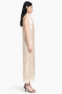 The Noor dress is the ultimate evening gown. Glittering sequins adorn a tulle backdrop, and it's designed with a high neck, then falls to a midi hemline with a contrasting hem. Details '- 67%Polyester 23%Polyamide 10%Metallic Fibre. Made In Italy