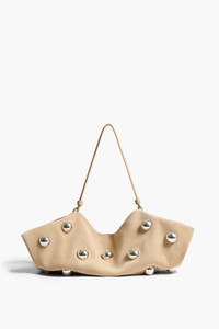 The Origami Bag is inspired by the ancient paper folding art. It's shaped in Spain from a single, rectangular piece of suede which folds down completely flat, and it's decorated with large studs. Details 100% Calf. Made in Spain