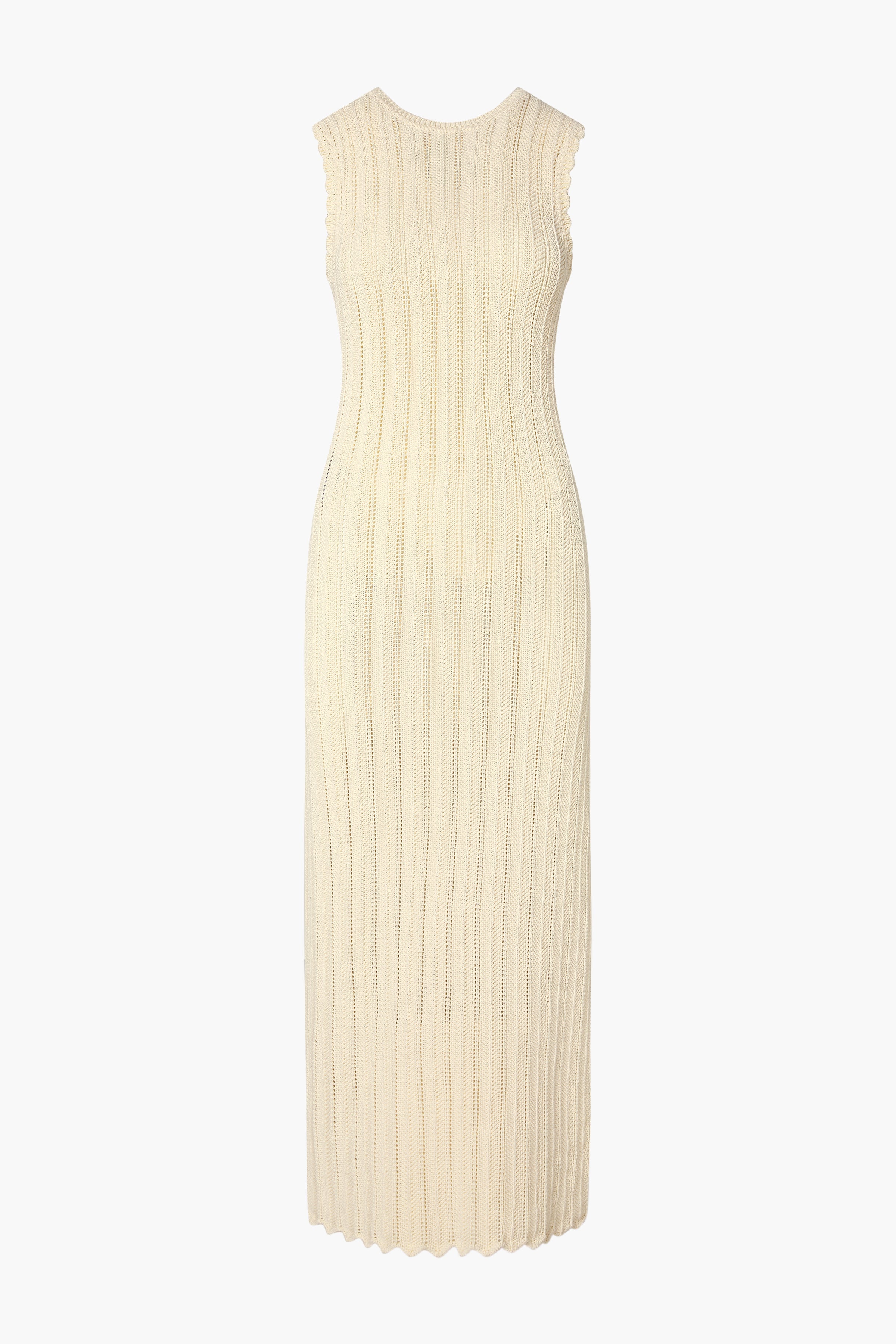 The Sissi dress features a curve-hugging silhouette and a ripple stitch construction. It's made from airy cotton open-knit with scallop trimmed sleeves and hem. Underpin yours with tonal underwear or a slip. Details 100% Cotton Imported