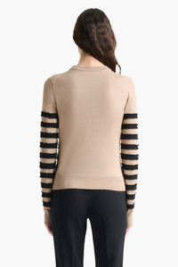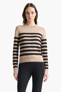 The Skippy sweater is aptly named thanks to the maritime stripes and neutral hue. It's made from a luxe blend of merino and silk with ribbed knit trims. Details >