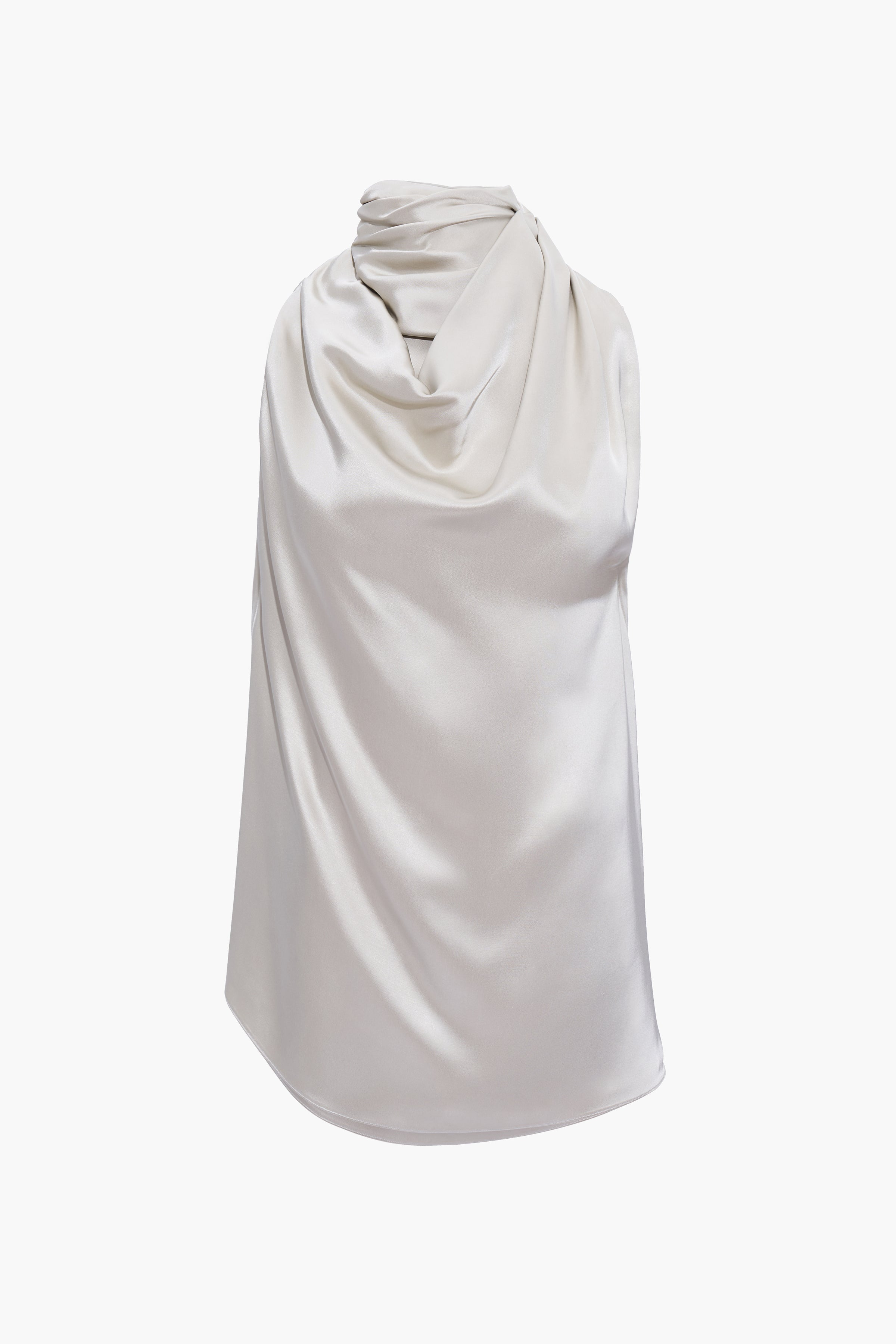 The Sleary top was featured on the FW25 runway. The pure silk silhouette is shaped to a high neck that elegantly drapes. Take cues from the show by wearing it with a maxi coat. Details 100% Silk. Made in Italy