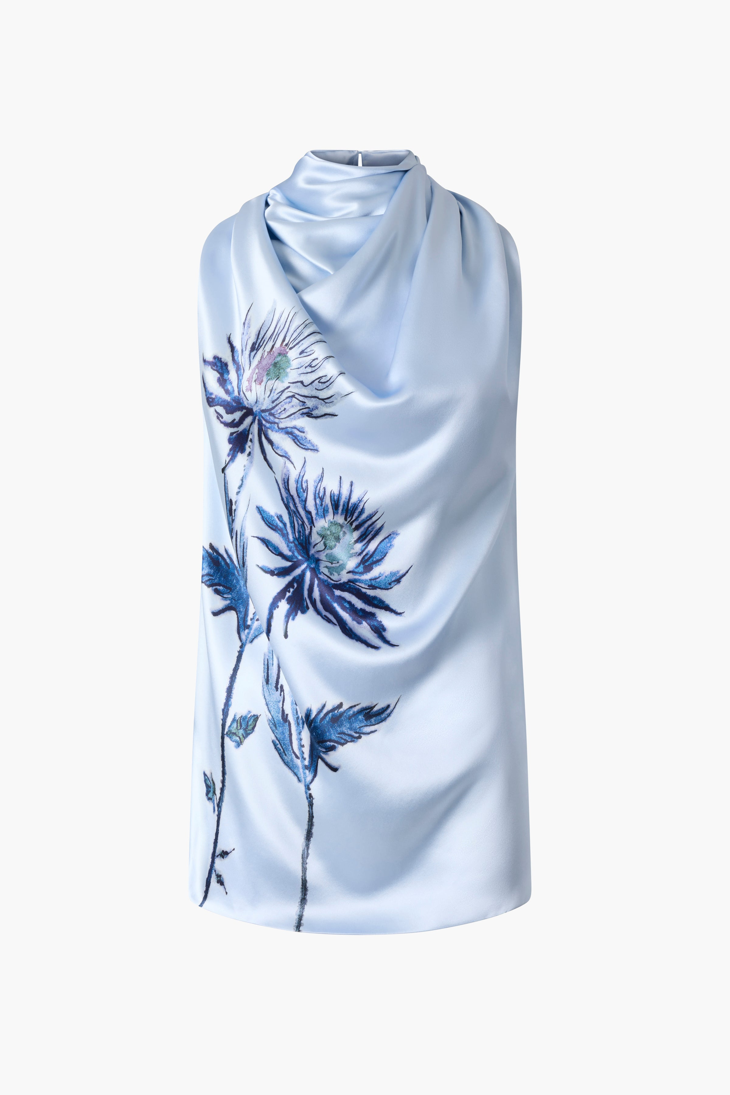 The Sleary top was featured on the FW25 runway. The pure silk silhouette is shaped to a high neck that elegantly drapes. Take cues from the show by wearing it with a maxi coat. Details 100% Silk. Made in Italy