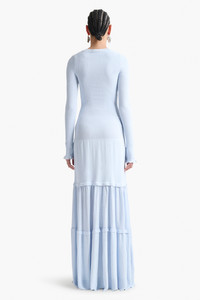 The Venda dress has a whimsical feel. It's shaped to a maxi silhouette with long sleeves and ruffled cuffs. Designed with a layered skirt in varying finishes, style it with heels come nightfall. Details -96% Viscose, 4% Elite -Imported