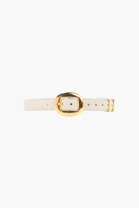 The Vintage Brass Buckle belt is Italian crafted from smooth leather with tonal topstitching. It features two textured gold metal loops and a single pin fastening. This belt is versatile and can be worn at both the hip and the waist. Details Tonal topstitching Gold metal loops Single-pin fastening 100% CALF LEATHER Made in Italy S: 80 cm / 31.5 in M: 90 cm / 35.4 in L: 100 cm / 39.4 in This is a hip-to-waist belt