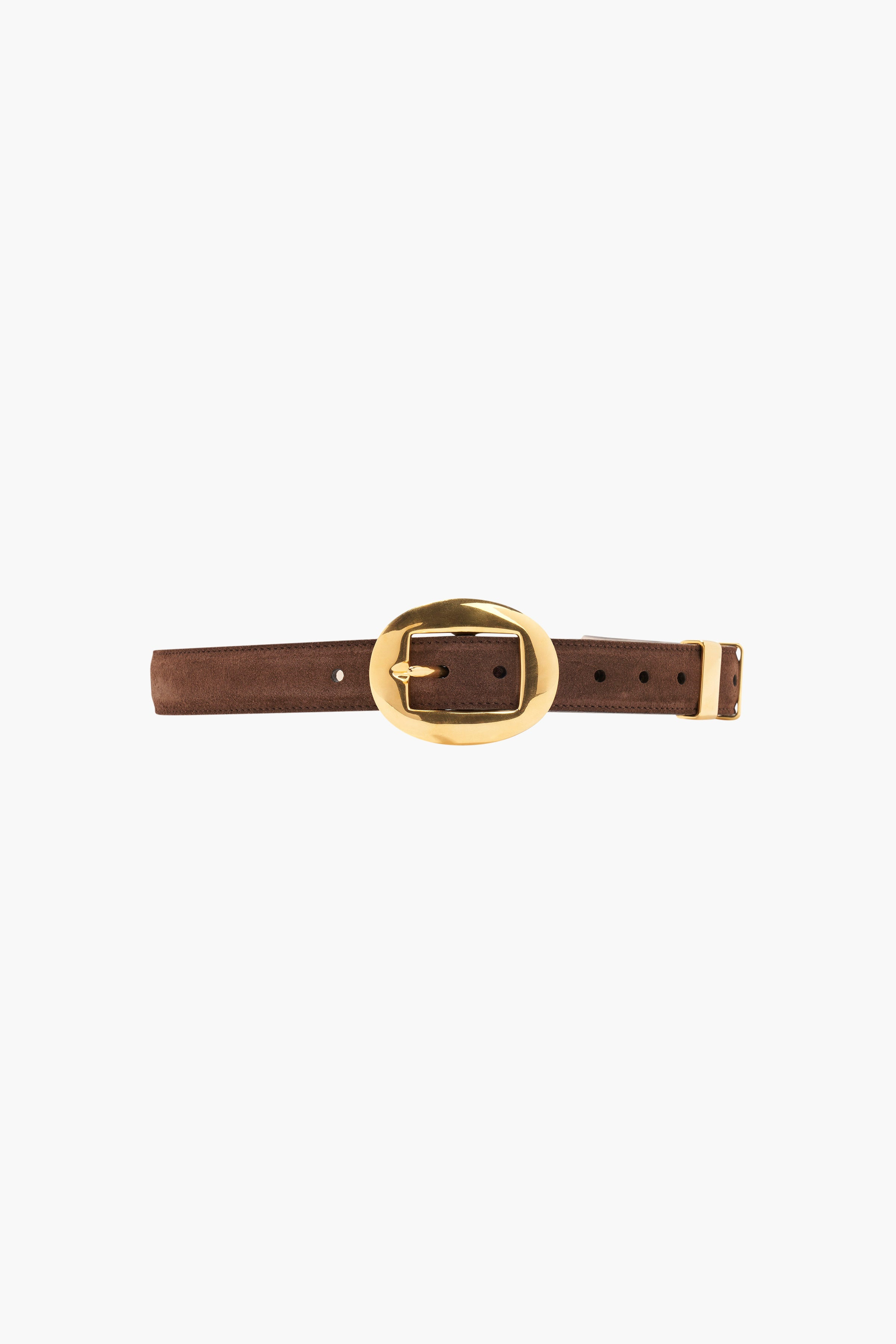 The Vintage Brass Buckle Belt is Italian crafted from smooth leather with tonal topstitching. It features two textured gold metal loops and a single pin fastening. This belt is versatile and can be worn at both the hip and the waist. Details Tonal topstitching Gold metal loops Single-pin fastening 100% CALF LEATHER Made in Italy S: 80 cm / 31.5 in M: 90 cm / 35.4 in L: 100 cm / 39.4 in This is a hip-to-waist belt